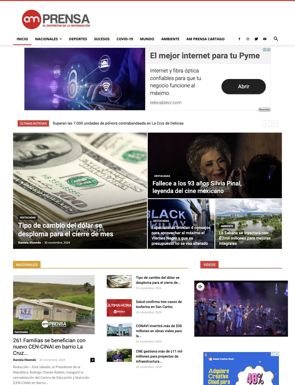 AMprensa es un medio digital de cobertura nacional en Costa Rica y el mundo que aborda temas de política, sucesos, tecnología, deportes y entretenimiento. Nuestras noticias son la combinación de una agenda propia y los temas diarios. El lema del medio es 'El despertar de la información'. En AM Prensa lo más importante es servir y brindar información que genere opinión y crítica constructiva.