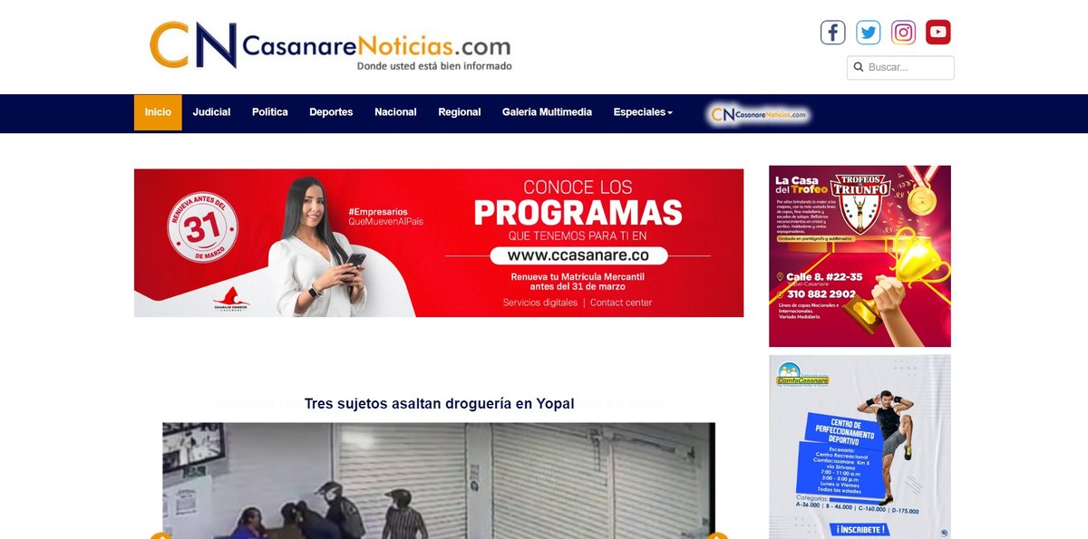 Casanare Noticias es un medio de comunicación dedicado a informar de manera integral sobre los eventos más relevantes que acontecen en Casanare, así como en la región de la Orinoquía y a nivel nacional en Colombia. Este medio se destaca por su compromiso con la veracidad y la objetividad en la narración de los acontecimientos, brindando a su audiencia una cobertura completa y actualizada de los sucesos que impactan a la comunidad a nivel regional.